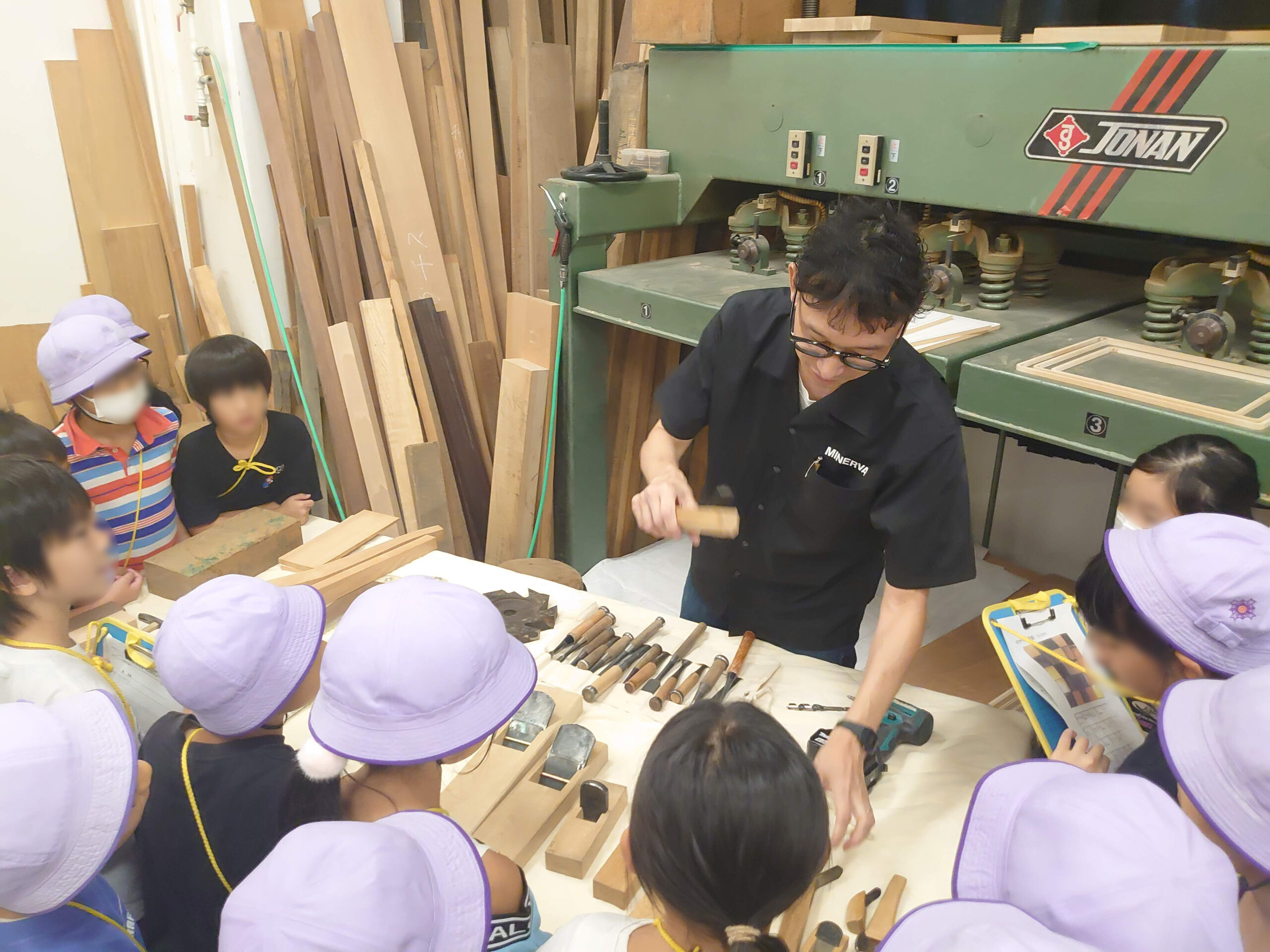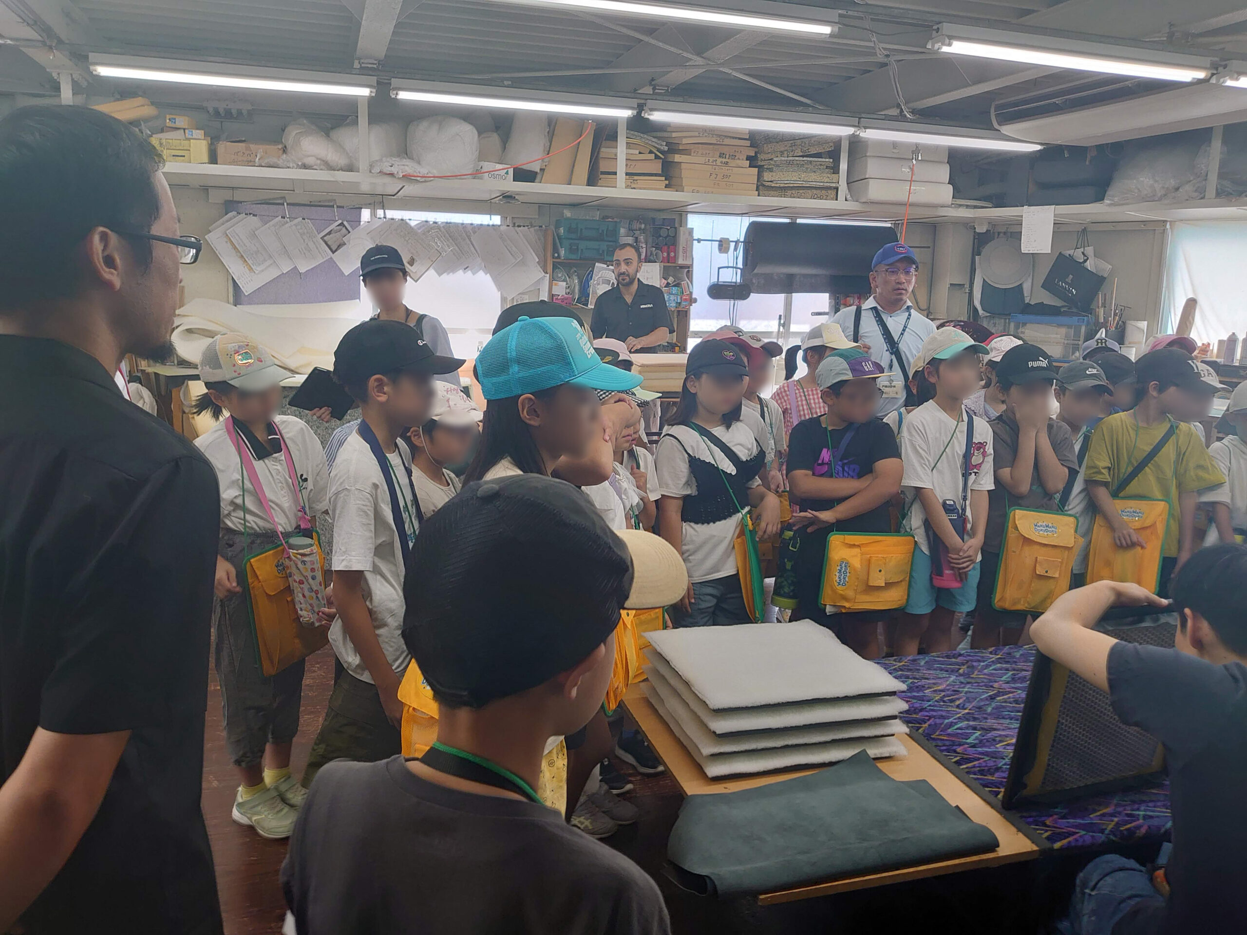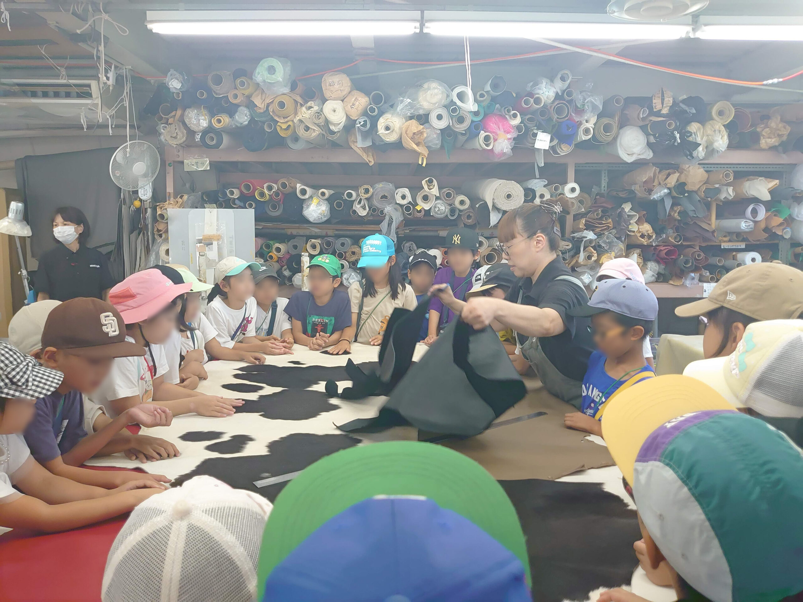 実際の製作現場を間近で体感していただくことで、「素材が形になるまで」を学ぶ貴重な機会となっており、職人たちの技術や手仕事の繊細さに、興味深く耳を傾ける子どもたちの姿が印象的です。