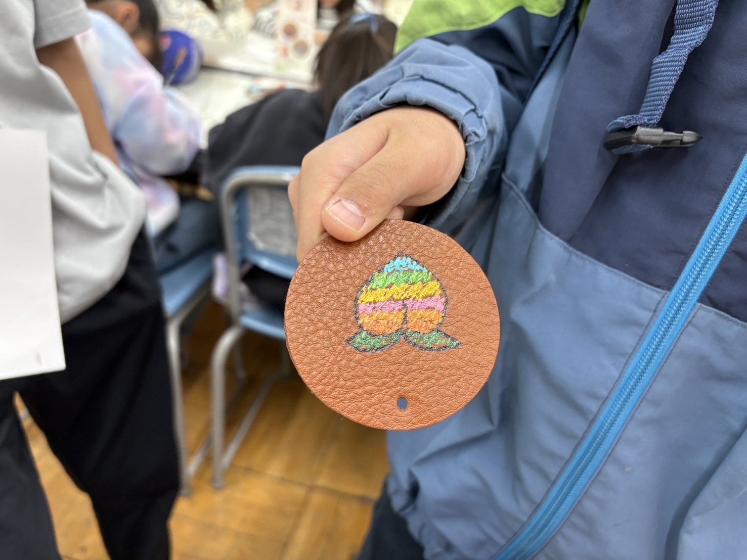 ご提供した革素材は、丁寧な下処理を経て、お子さまたちが自由に絵を描いたり、好きな形に加工したりと、創造力を存分に発揮できる体験に活用していただけました。